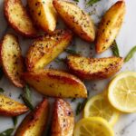 Greek Lemon Potatoes are a flavorful and tangy roasted side dish featuring starchy potatoes cooked in a zesty mixture of lemon juice, garlic, oregano, and olive oil. Slow-roasted to crispy perfection, these potatoes are a classic of Greek cuisine and make a perfect accompaniment to grilled meats or a Mediterranean meal.