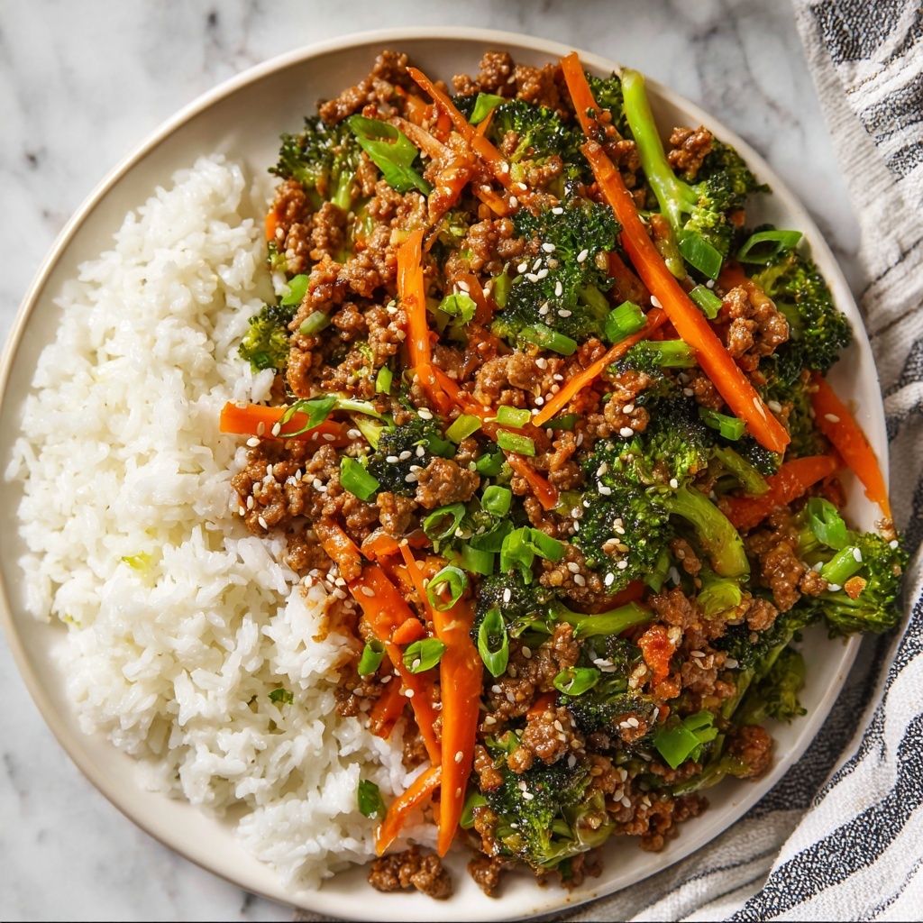 This Ground Turkey Teriyaki Stir Fry is a quick and flavorful weeknight meal featuring tender turkey, crisp broccoli, and shredded carrots cooked in a homemade teriyaki sauce. The dish combines savory, sweet, and tangy notes from soy sauce, honey, and orange zest, making it a delicious and healthier alternative to takeout. Ready in just 30 minutes, this stir fry pairs perfectly with rice or noodles for a satisfying dinner.