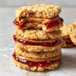 These Healthy Flourless Peanut Butter & Jelly Cookie Sandwiches are a wholesome twist on the classic PB&J treat. Made without flour and sweetened naturally with honey, these cookies combine creamy peanut butter, hearty oatmeal, and your favorite fruit spread to create a delicious, protein-packed snack that’s perfect for any time of day.