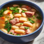 A comforting and hearty Hearty Ham and Bean Soup made with great northern beans, a meaty ham bone or diced ham, and a flavorful mix of vegetables and herbs simmered to perfection in low-sodium chicken broth.
