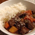 - Assemble the Bowls: Divide cooked rice into bowls, top each with steamed broccoli or mixed vegetables, and then spoon the Beijing beef over the top. Garnish with chopped green onions and sesame seeds if desired.