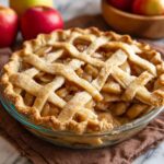 Roll out one disc of chilled dough on a floured surface, then carefully fit it into a 9-inch pie dish. Pour the apple filling inside, dotting with small pieces of butter to add richness and help create a golden crust. Roll out the second dough disc and lay it gently over the top. Trim excess dough, then crimp edges to seal the pie completely. Don’t forget to cut small slits in the top crust for steam to escape, which keeps the filling bubbling perfectly inside during baking.