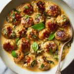 These Marry Me Meatballs in Creamy Tomato Sauce feature tender chicken and pork meatballs baked to perfection and simmered in a luscious, tangy tomato cream sauce enriched with sun-dried tomatoes, fresh herbs, and Parmesan. A perfect blend of spice, umami, and herbaceous notes, this dish delivers irresistible comfort food ideal for a cozy dinner.