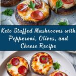 Delicious and easy Keto Stuffed Mushrooms recipe featuring portobello mushrooms filled with keto-friendly pizza sauce, olives, pepperoni, and topped with melted cheese and Italian seasoning. Perfect low-carb appetizer or snack baked to savory perfection.