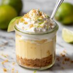 - Add the topping and garnish: Spoon or pipe the whipped cream generously on top of the key lime filling in each jar. Garnish with additional lime zest or a small lime wedge if desired for extra flair.