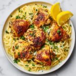 This Lemon Garlic Butter Chicken with Creamy Parmesan Linguine is a delightful Italian-American main course featuring tender, pan-seared chicken breasts infused with zesty lemon and garlic flavors, served atop rich and creamy Parmesan-coated linguine. The dish perfectly balances buttery, tangy, and savory elements for a comforting yet elegant meal ideal for weeknight dinners or special occasions.