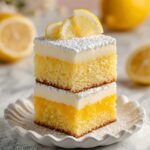Consider cutting the cake into squares and arranging them on a decorative platter garnished with lemon twists or edible flowers for an inviting display. You can even serve individual slices with a drizzle of lemon glaze or a few berries on top for a stunning dessert plate.
