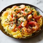 A light and refreshing Italian-inspired lemon spaghetti with succulent shrimp, combining zesty lemon juice, garlic, and Parmesan for a flavorful and easy-to-make seafood pasta dish perfect for weeknights or special occasions.