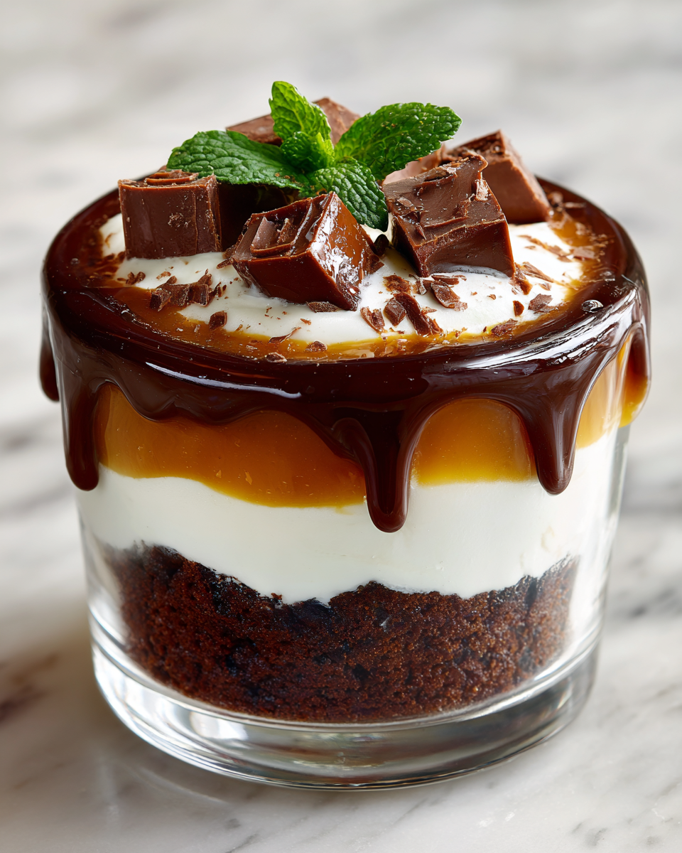 Garnishing is where you get to play and personalize your dessert cups. The classic caramel drizzle is a must, adding that golden, sticky sweetness that pairs perfectly with chocolate and cream cheese. Mini chocolate chips give bursts of rich cocoa flavor, while chopped nuts provide a satisfying crunch. A swirl of whipped cream not only looks beautiful but also adds a fluffy, mild contrast to the denser layers beneath.