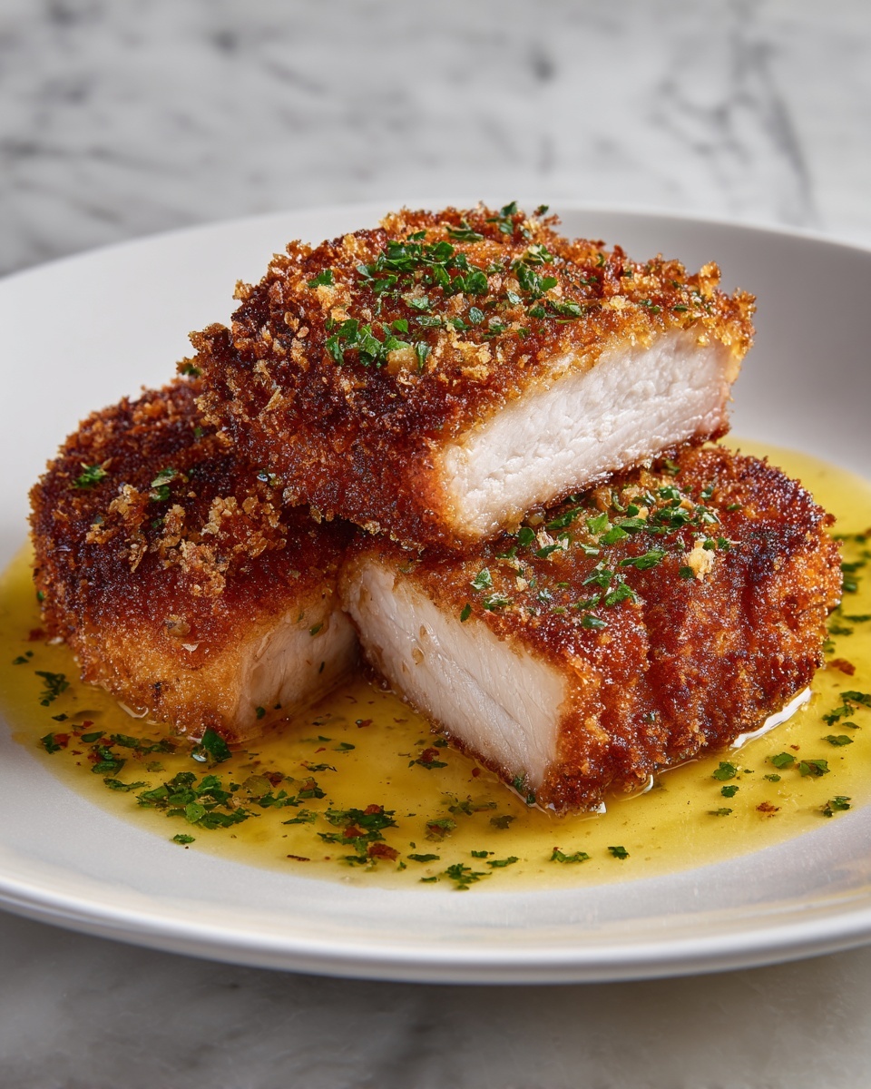 Start by flattening your chicken breasts to an even thickness. This little trick ensures they cook uniformly and stay tender. Patting them dry is key as it helps the breading stick better. Then, sprinkle lightly with salt and black pepper to season the meat just right.