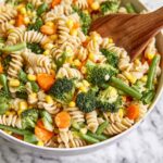 This Lunch Lady Pasta Salad is a quick and easy dish perfect for a light lunch or side. Featuring rotini pasta mixed with thawed frozen vegetables and fresh chopped broccoli, all tossed in a zesty Italian salad dressing, it’s a refreshing and colorful salad that comes together in just 15 minutes. Ideal for meal prep or potlucks, this salad is served chilled and packed with crisp veggies and flavorful dressing.