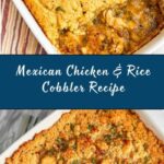 A comforting and hearty Mexican Chicken & Rice Cobbler featuring a savory biscuit topping baked over a flavorful mixture of seasoned chicken and Mexican rice, perfect for a family-friendly dinner.
