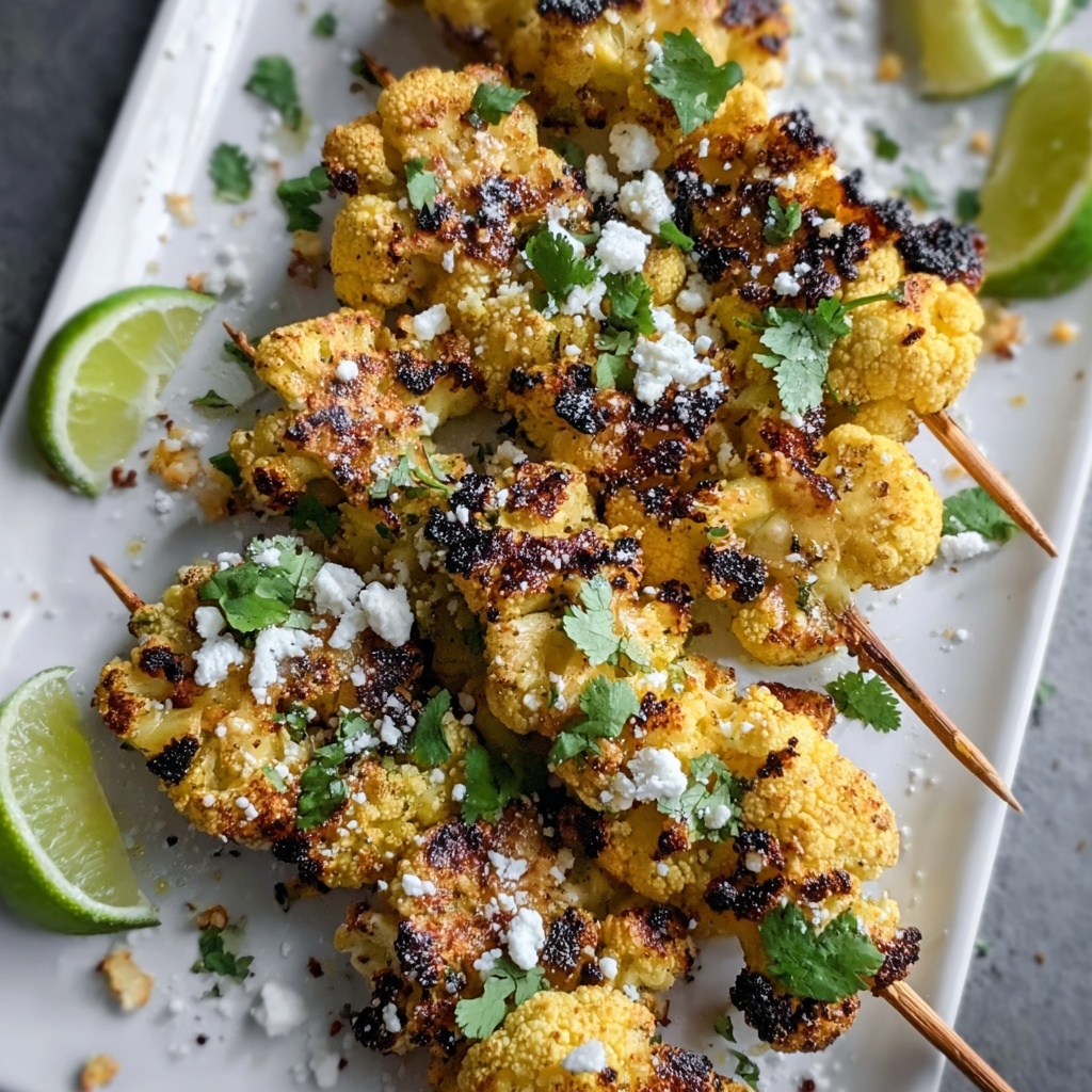 A flavorful Mexican street-style grilled cauliflower recipe that combines smoky charred florets with a creamy, zesty chili-lime crema and crumbled Cotija cheese, garnished with fresh cilantro. This delicious vegetarian dish is perfect as a unique side or appetizer.