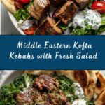 Delicious Middle Eastern Kofta Kebabs made with spiced ground beef or lamb, grilled to perfection and served alongside a fresh, vibrant cucumber and tomato salad with herbs and tangy lemon dressing, complemented by warm pita or flatbreads.
