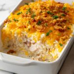 A comforting and creamy casserole featuring chicken, cheesy Rice-A-Roni, and a crunchy Ritz cracker topping. This Million Dollar Chicken Rice-A-Roni Casserole combines savory flavors with ease, making it a perfect weeknight dinner or potluck favorite.