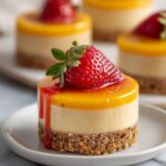 - Bake the Mini Cheesecakes: Preheat the oven to 325°F (163°C). Pour the batter into a greased muffin tin or lined mini cheesecake cups. Bake for 18-20 minutes or until the centers are set but still slightly jiggly. Remove from oven and allow to cool to room temperature, then refrigerate until fully chilled, about 1 hour.