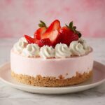 This No Bake Strawberry Cheesecake is a luscious and creamy dessert that’s perfect for warm days or when you want a delicious treat without turning on the oven. The cheesecake features a buttery graham cracker crust, a smooth strawberry-infused cream cheese filling, and a fresh strawberry topping. It requires no baking, making it simple to prepare but impressive in flavor and presentation.