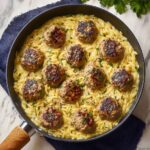 To reheat, warm the meatballs in a covered skillet over low heat until heated through, or use an oven at 350°F (175°C) for about 15 minutes. Covering them helps keep the moisture locked in, so the meatballs stay juicy and the sauce does not dry out.