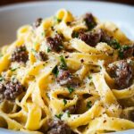 A comforting one-pot creamy beef and garlic butter pasta that’s perfect for busy weeknights. Ground beef is browned and combined with sautéed garlic and onions, simmered in a flavorful broth and milk mixture with Italian seasoning and red pepper flakes, then finished with Parmesan cheese and fresh parsley for a rich and satisfying meal.
