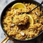This One Pot Moroccan Quinoa is a vibrant, flavorful dish inspired by Moroccan spices and wholesome ingredients. Featuring a colorful mix of vegetables, chickpeas, and aromatic spices sautéed and simmered together with quinoa, it is a nutritious and easy meal perfect for a busy weeknight. The dish is brightened with fresh parsley and served with lemon wedges, offering a delightful balance of savory and tangy flavors in each bite.