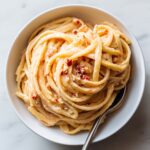 Once the pasta is al dente and the sauce has thickened beautifully, stir in the grated Parmesan cheese. Season with salt, black pepper, and red pepper flakes if you like an extra punch of heat. This step amplifies both the richness and the complexity of flavors.