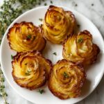 Serve your Potato Roses Recipe on a wooden board or a colorful platter to contrast their golden hues. For a festive twist, you can use colored potato varieties like purple or red to create multi-colored roses. Another idea is to bake them in mini tart pans to give them an elegant, individual-serving vibe.