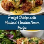 Crispy pretzel-crusted chicken breasts paired with a rich and tangy mustard-cheddar sauce, creating a deliciously easy and impressive meal perfect for weeknight dinners or entertaining guests.