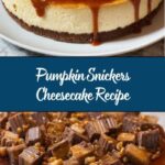 This Pumpkin Snickers Cheesecake combines the creamy richness of classic cheesecake with the warm spices of pumpkin and the delightful crunch of Snickers bars. Featuring a chocolate cookie crust, spiced pumpkin-infused cream cheese filling, and gooey caramel topping, this dessert is perfect for fall celebrations and indulgent gatherings.