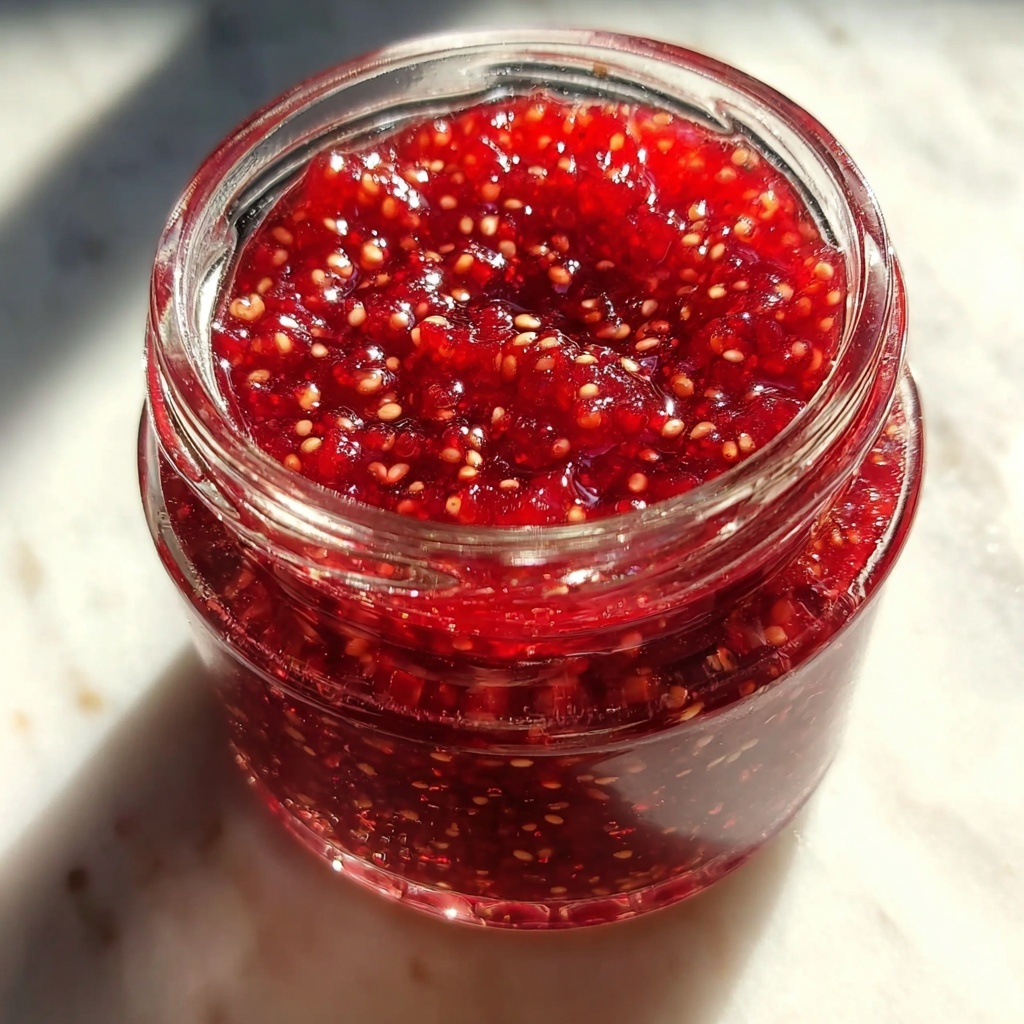 Enhance your Raspberry Chia Jam Recipe by sprinkling fresh mint leaves or edible flowers on top when serving. This not only adds a pop of color but also a refreshing aroma that pairs beautifully with the jam’s tartness.