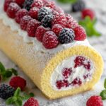 This Raspberry Cream Roll Cake is a delightful and elegant dessert featuring a light and fluffy sponge cake rolled with a rich mascarpone and whipped cream filling, studded with fresh raspberries. Perfect for special occasions or a sophisticated treat, it combines the tartness of raspberries with the creamy sweetness of mascarpone and whipped cream, all wrapped in a delicate rolled cake dusted with powdered sugar and optionally topped with chocolate ganache.