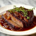 This Red Wine & Gelatin Jus Brisket is a tender, flavorful slow-cooked beef dish that combines the richness of red wine and beef broth with a gelatin-enhanced jus for a luxurious texture. Perfectly seasoned and oven-braised, the brisket becomes melt-in-your-mouth tender, served alongside a deeply savory sauce made from vegetables and aromatic garlic.
