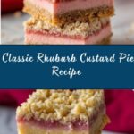 For a fun twist, serve smaller slices in elegant glass dessert dishes layered with whipped cream and fresh rhubarb for a deconstructed Rhubarb Custard Pie experience. Alternatively, cut bite-size pieces and garnish with fresh mint leaves and edible flowers to wow your guests with a pretty and sophisticated presentation.