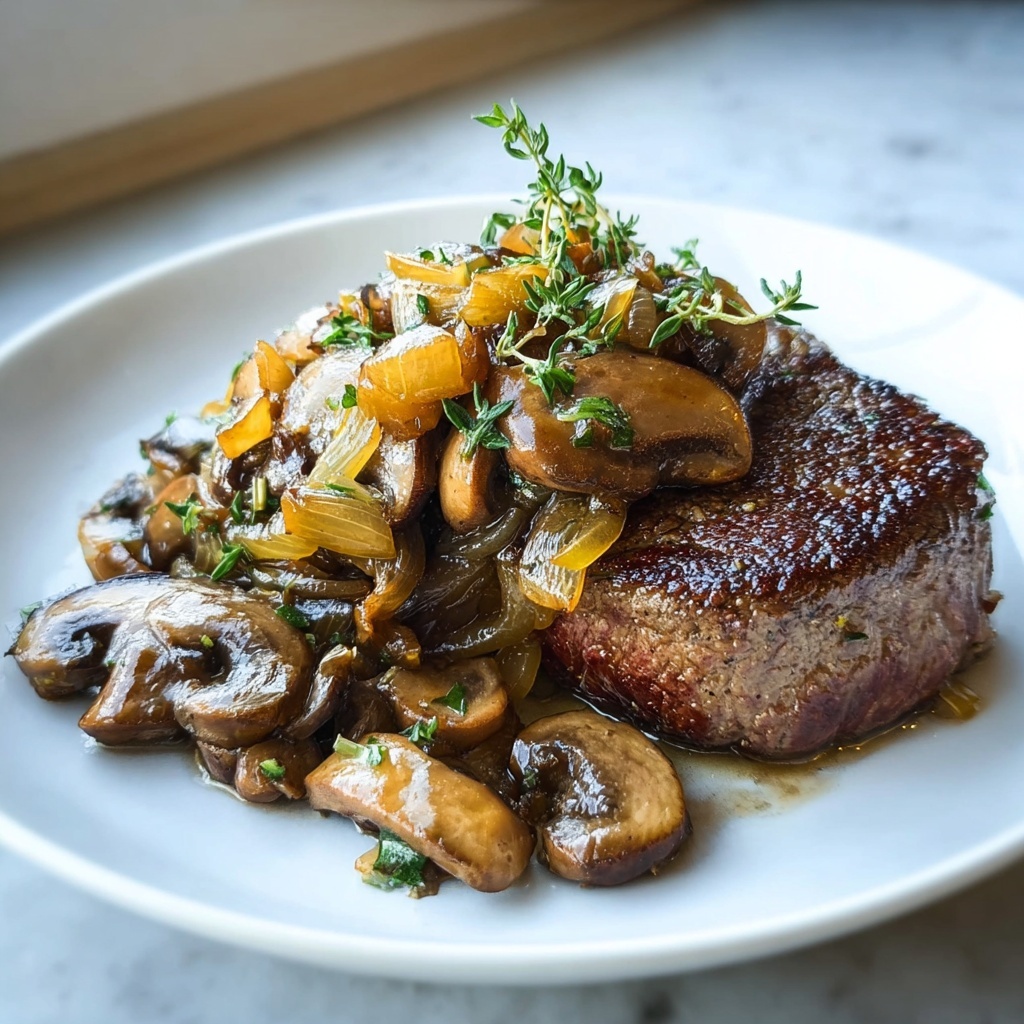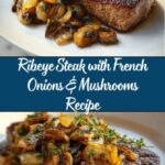 A delicious and savory ribeye steak recipe topped with caramelized French onions and sautéed mushrooms. Perfectly cooked to medium-rare and enhanced by a flavorful mushroom and onion topping, this dish is ideal for a quick yet impressive dinner for two.