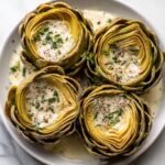 For an inviting presentation, serve the artichokes whole on a rustic wooden board alongside small bowls of garlic butter and lemon wedges. You can even let guests pick and pull the leaves, making the meal interactive and fun.