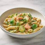 Reheat gently in a skillet over low heat, adding a splash of water or broth to keep the sauce creamy and prevent the pasta from drying out. Alternatively, microwave in short bursts, stirring in between to maintain even warmth without overcooking the salmon.