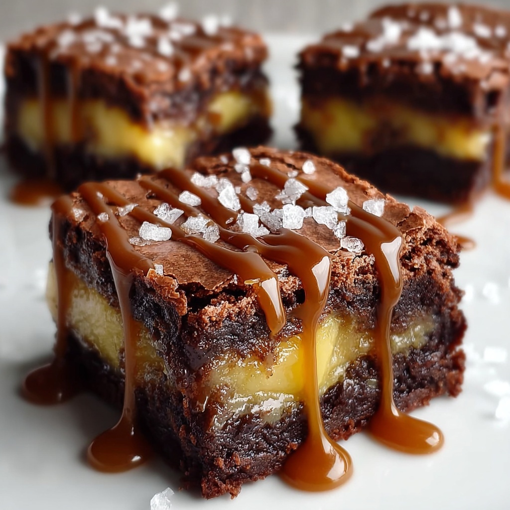 - Add Caramel Swirl: Remove the brownies from the oven, drizzle the caramel sauce over the warm surface, and gently swirl it through the batter using a knife for a marbled effect.
