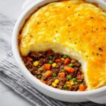 Shepherd’s Pie is a classic British comfort food featuring a savory mixture of ground lamb or beef with vegetables, topped with creamy mashed potatoes and baked to golden perfection. This hearty casserole combines tender meat, flavorful vegetables, and a cheesy, crispy potato crust, perfect for a satisfying family dinner.