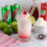 - Garnish and Serve: Top the float with a dollop of whipped topping, garnish with maraschino cherries, a lime slice, and a sprinkle of pink sanding sugar if desired. Serve immediately and enjoy this delightful classic beverage.