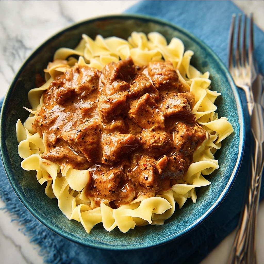 For a fun twist, serve the stroganoff inside cozy bread bowls or over a bed of creamy mashed potatoes instead of noodles. You could also spoon it over buttered rice or roasted vegetables to mix things up and keep every dinner exciting and new.