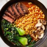 Garnishing your Slow Cooker Curry Ramen with Beef Recipe really makes the dish come alive. I love adding halved soft boiled eggs for that luxurious creaminess. Freshly sliced green onions provide a bright pop of color and a gentle oniony crunch. Toasted sesame seeds add a lovely nuttiness and subtle texture contrast. If you like a bit of heat, a drizzle of extra red curry paste or chili oil turns up the excitement beautifully.