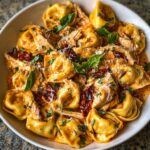 Reheat gently on the stovetop over low heat or in the microwave, stirring occasionally to ensure even warming without breaking up the tortellini. If the sauce thickened too much, add a splash of chicken stock or cream to loosen it back up.