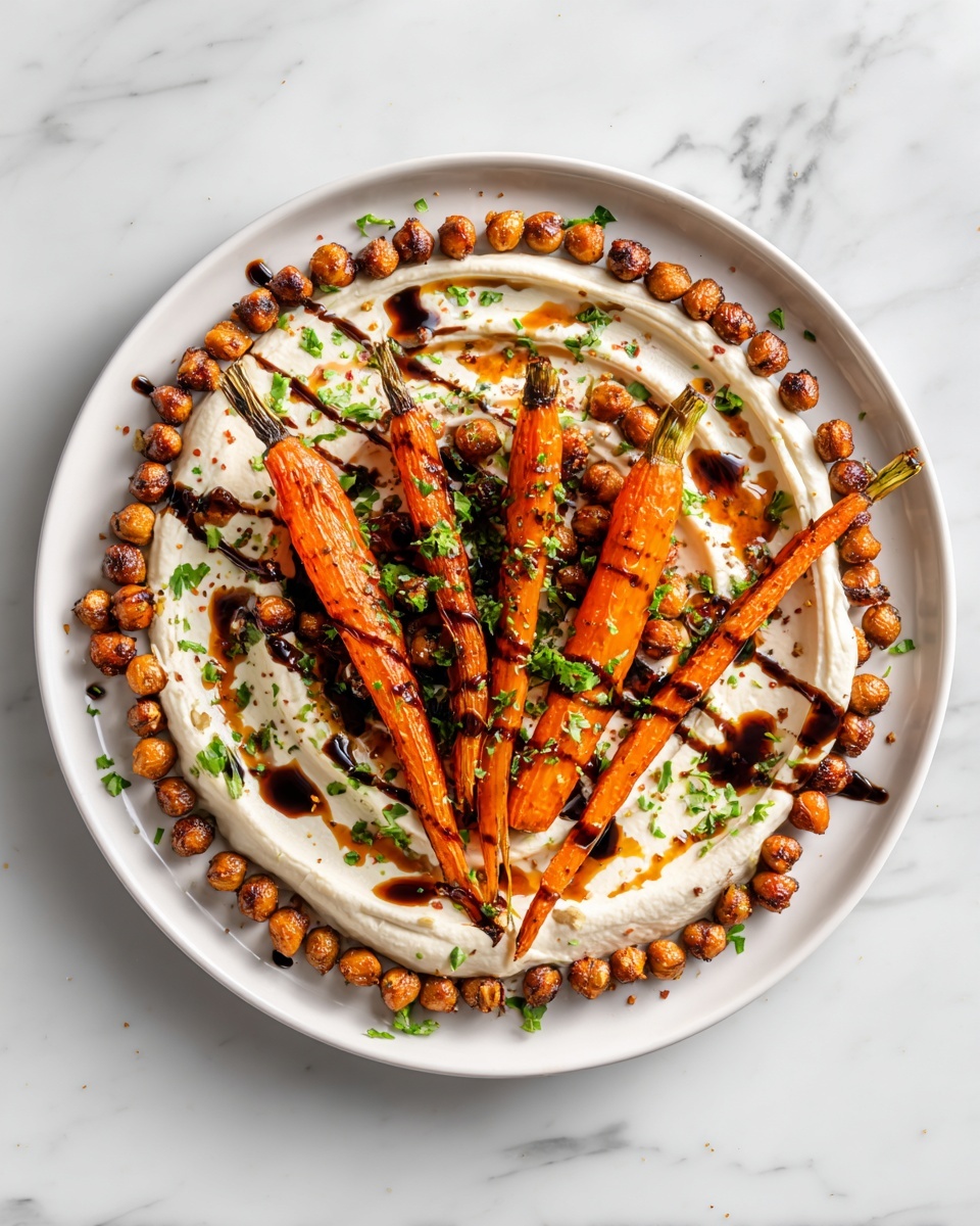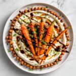 - Assemble the Dish: Spread a generous layer of the yogurt sauce on each serving plate. Arrange the roasted carrots on top, drizzle with some extra sauce, then scatter the crispy chickpeas over the dish.