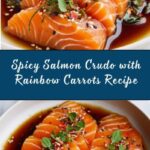 Spicy Salmon Crudo & Carrots is a fresh, vibrant appetizer featuring thinly sliced sashimi-grade salmon drizzled with a tangy, spicy dressing. Enhanced with delicate carrot ribbons and garnished with fragrant herbs and sesame seeds, this no-cook dish is perfect for a light, elegant starter that combines bold flavors and bright textures.