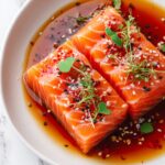 Start with perfectly thin slices of sashimi-grade salmon arranged carefully in a single layer on your serving plate. The thin slicing ensures the salmon feels delicate but substantial in every bite, setting the stage for all the flavors to meld beautifully.