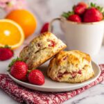 Pair your strawberry buttermilk scones with a cup of hot tea or freshly brewed coffee for a cozy breakfast or afternoon treat. A small bowl of mixed berries or a light fruit salad balances the richness of the scones perfectly, making for a light yet indulgent spread.