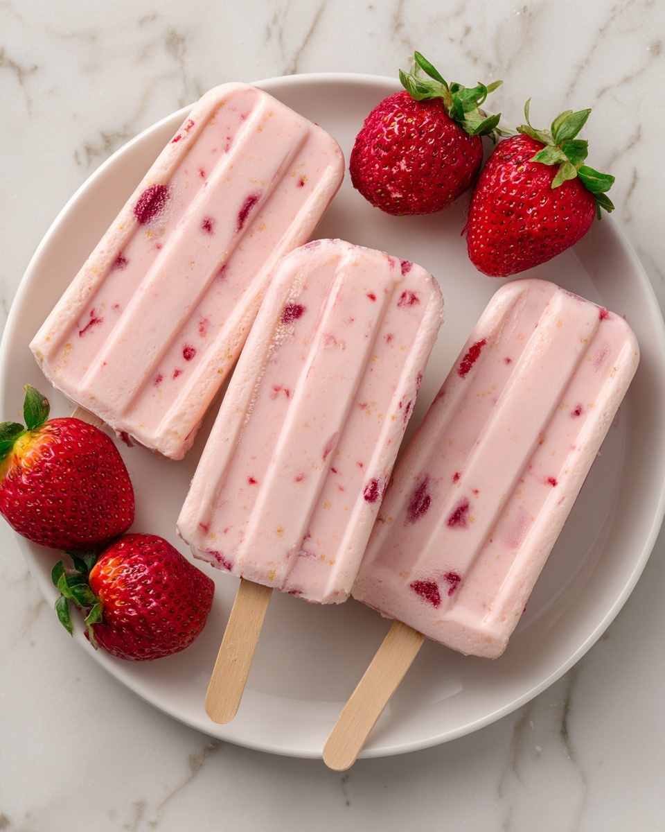 Enhance your pops by serving them with fresh strawberry slices or a sprinkling of crushed nuts like pistachios or almonds. A drizzle of honey or a few fresh mint leaves can also brighten the presentation and add exciting flavor contrasts.