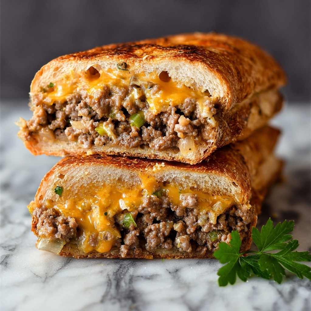 While the filling is simmering, slice your French bread loaf lengthwise into two equal halves. Carefully scoop out the soft bread from the center, leaving a shell thick enough to hold the filling. Tear the scooped bread into small pieces, and then mix these pieces right into your beef mixture. This little trick helps absorb some of the juices, making the stuffing hearty and less runny.