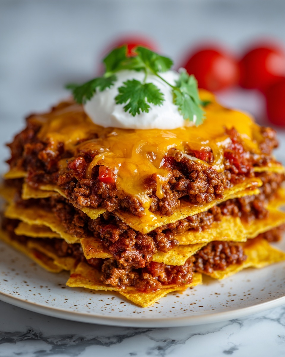 Garnishing is where you get to add your personal touch. Sliced olives bring a salty punch, green onions add freshness and color, while sour cream and guacamole offer creamy contrasts that balance the richness of the cheese and beef. These little extras make every bite feel special and add layers of flavor and texture that make this dish truly shine.
