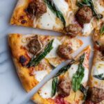 This Turkey Sausage and Broccoli Rabe Pizza combines the savory flavors of lean turkey sausage and slightly bitter broccoli rabe with a blend of mozzarella and Parmesan cheeses on a crispy pizza crust. A hint of garlic and optional red pepper flakes add depth and a touch of heat, making it a delicious and satisfying meal ready in just 30 minutes.