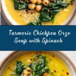 This vibrant Turmeric Soup with Chickpeas, Orzo, and Spinach is a wholesome and comforting Mediterranean-inspired dish. Packed with nourishing ingredients like turmeric, chickpeas, and fresh spinach, this easy stovetop soup offers a perfect blend of earthy spices and fresh flavors, making it an ideal quick dinner option for vegetarians.